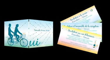Créations de vos invitations, de vos menus et de vos nominettes sur base du graphisme créé pour vos